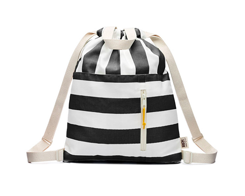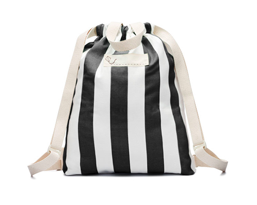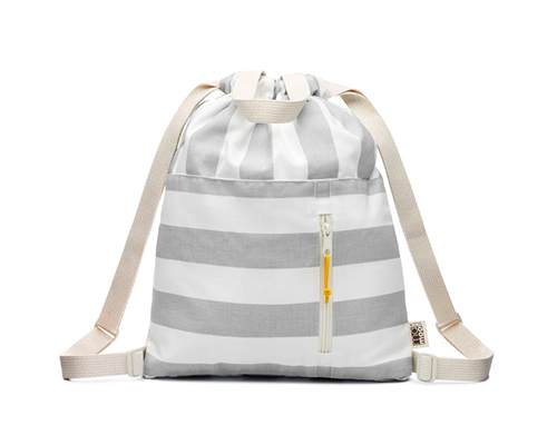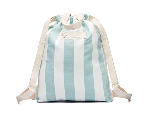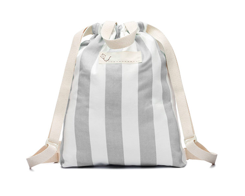 Striped 100% cotton canvas drawstring backpack with handles, adjustable shoulder straps and an open and zippered front pocket finished with an Ultrasuede pull. All of Mamoo Kids cotton bags are soft, lightweight and foldable for maximum comfort.