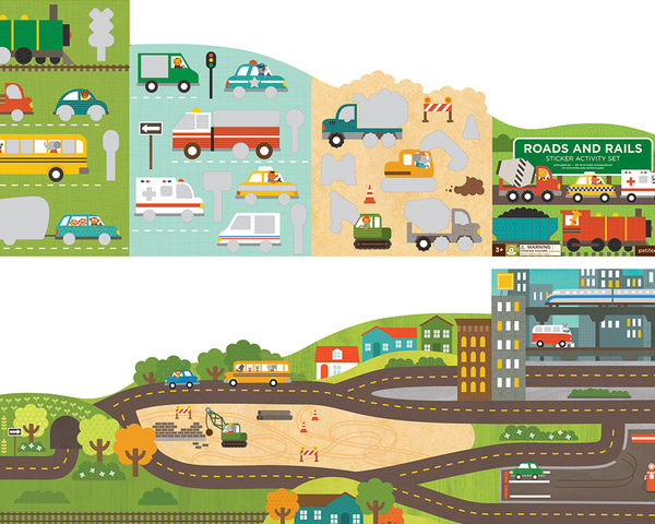 - Roads & Rails Sticker Activity Set - Hours of fun await with this sticker activity set. The large foldouts feature playful illustrations on both sides, and over 100 detailed stickers to fill in the engaging scenes. Compact and lightweight, perfect for fun at home and on the go.